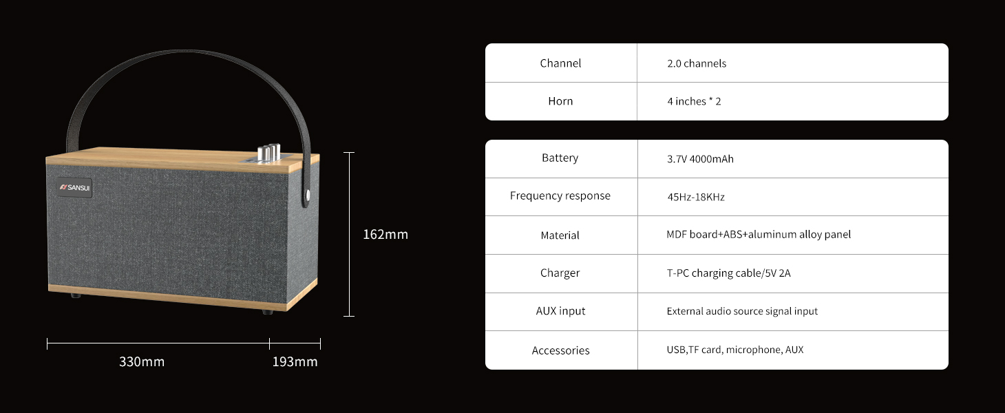 Function: USB/AUX/TF/FM/Bluetooth